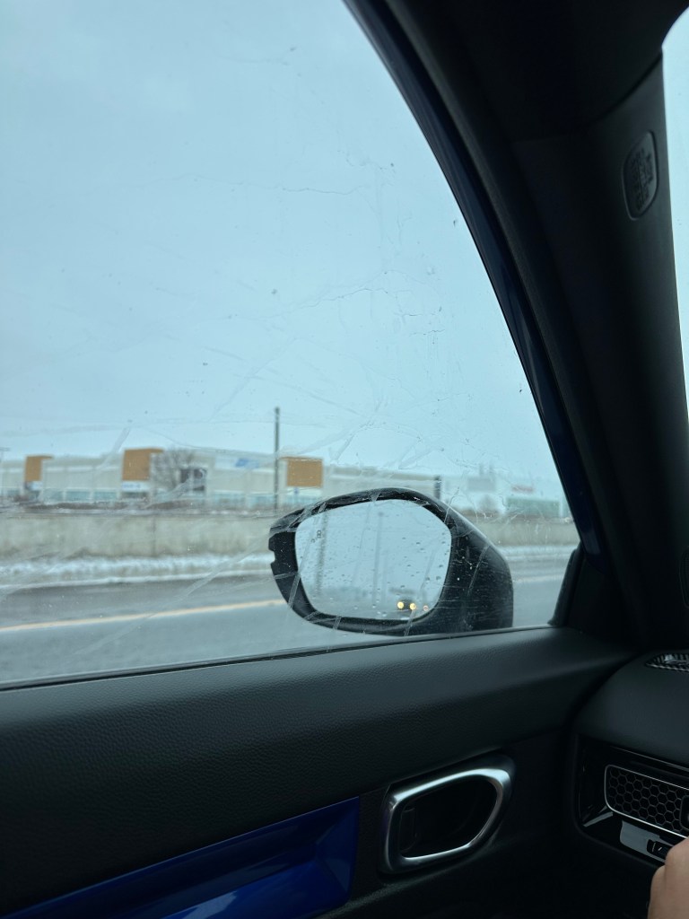 Moreover, the exit passage for the wiper fluid was not designed well. As seen in the picture above, the water leaves dirty streaks on the driver-side window and door. It becomes a hindrance on highway runs.